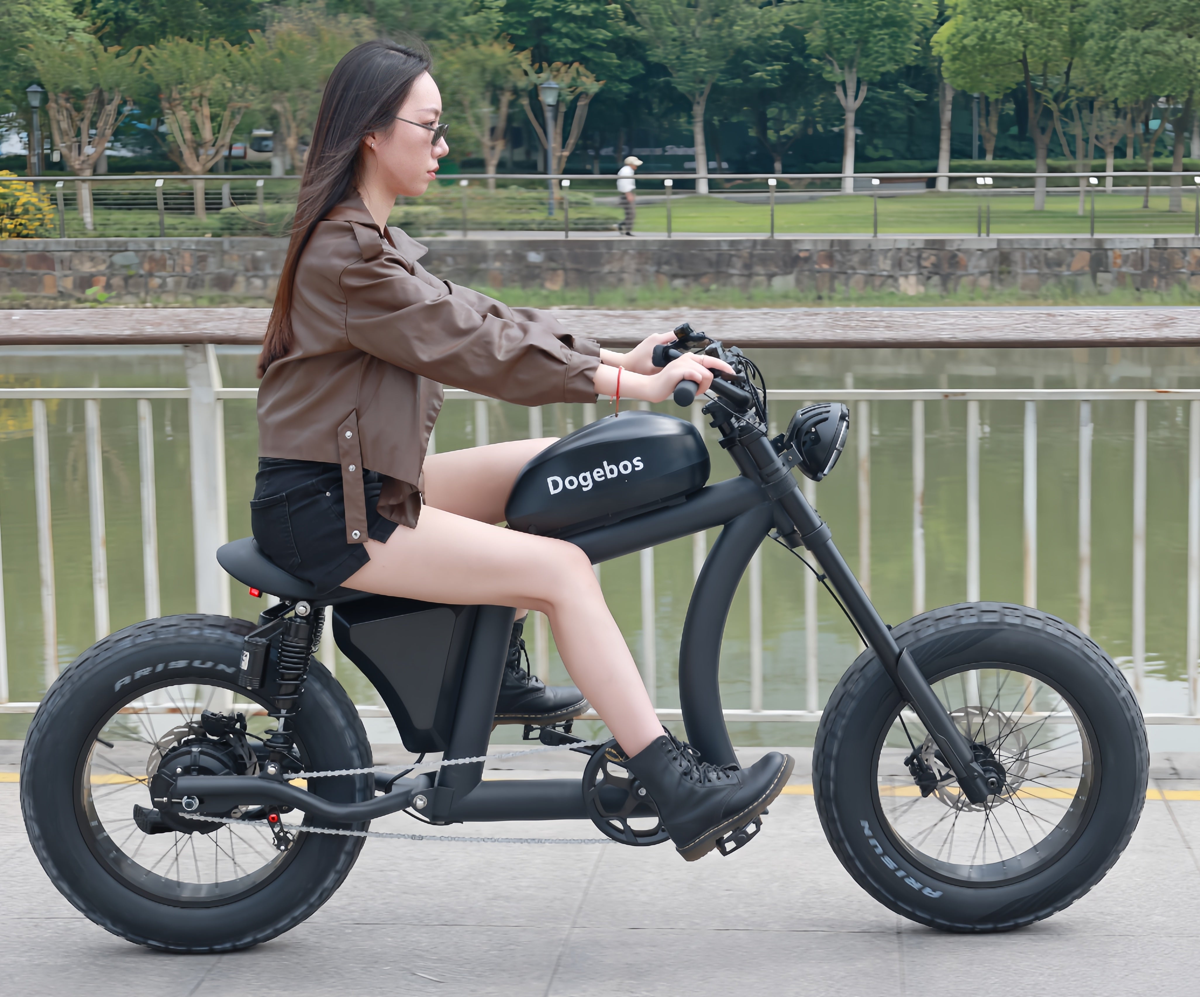 When you ride dogebos FT02 on Beach You can feel The sea breeze blows on your face and see the waves lapping gently. you don't worried about speed bumps or obstacles on the road ,because the bike have front and rear suspension they can pass them