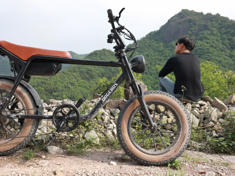 Dogebos K3 electric bike tire size 20*4.0 , making it perfect for off-road and mountainous terrains. In your free time, you can take it up the hills, enjoying the thrill of splashing through mud and feeling the excitement as the tires roll over rocks. Experience the joy of riding through puddles and making unforgettable memories with every adventure!