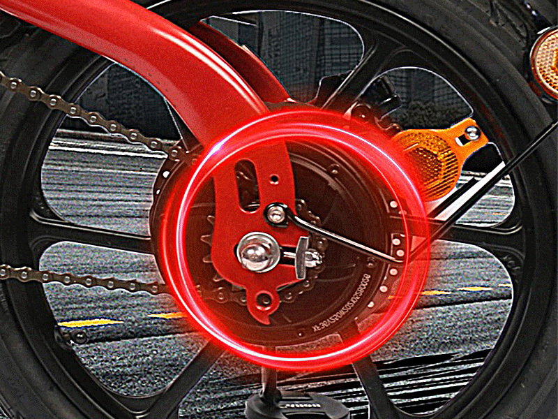This foldable electric bicycle has an outstanding design. The body adopts striking red as the main color, combined with the black frame and wheels, creating a sharp contrast of visual impact. The exquisite and rounded body lines reflect the designer's careful carving of details, making the whole vehicle present a fashionable and dynamic trend.